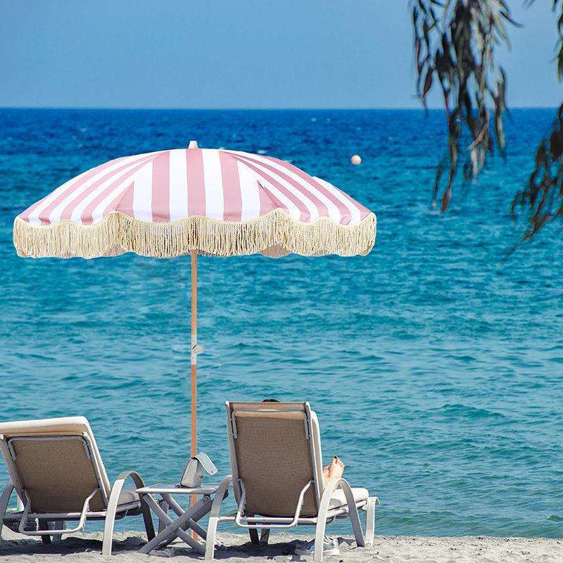 2023 popüler premium pamuk püskül plaj şemsiye seti UV 50 + tuval gölgelik gölge özel plaj şemsiyesi ve sandalye
